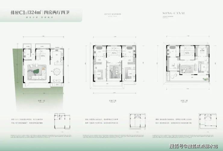 建面约324㎡排屋,单层的南向开间更是做到了约11.7米,整体超35米,轻松实现「阳光满屋」。