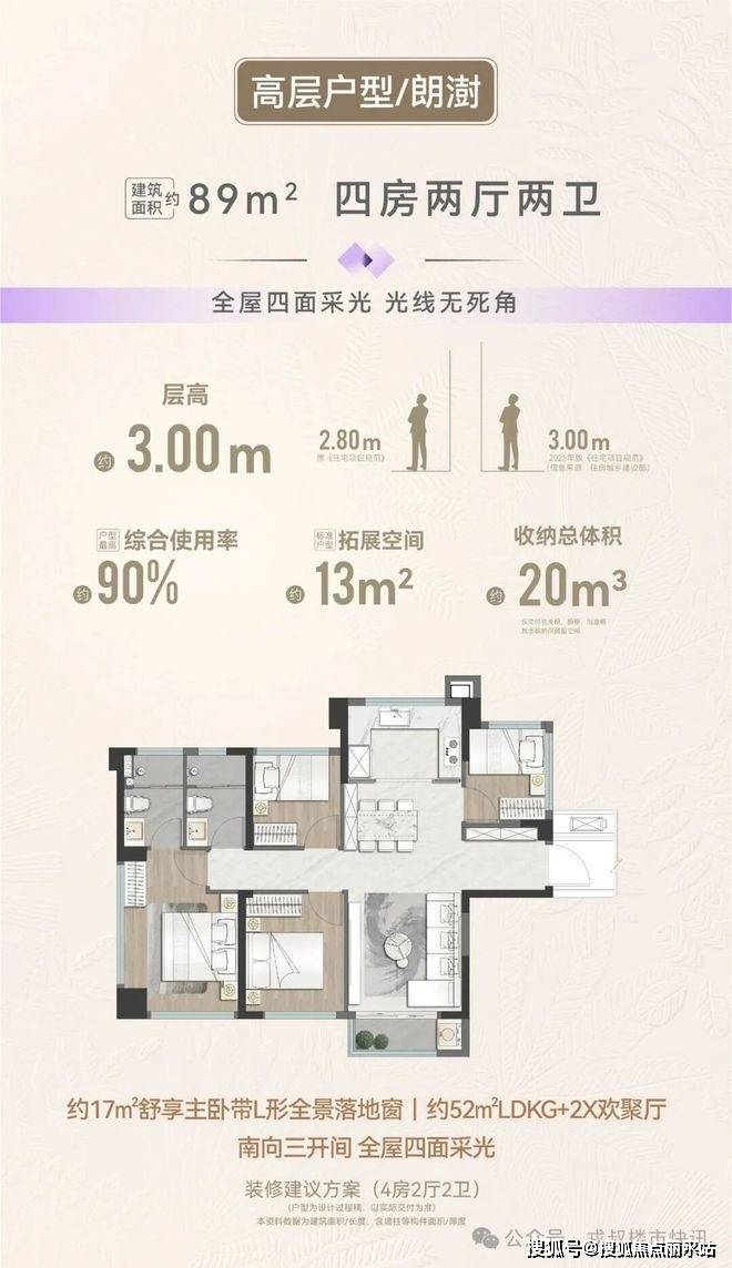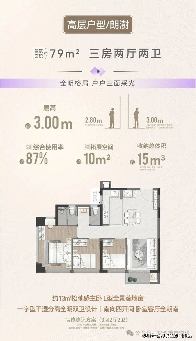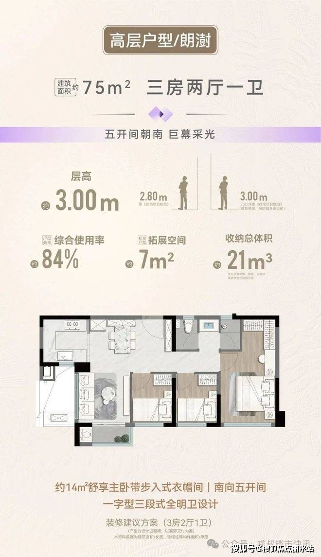 其中64㎡精装两房得房率85%,客厅卧室全朝南,主卧带衣帽间,顶配精装+智慧社区,主打小而精。