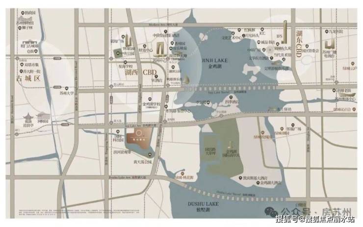 凤起潮鸣位于湖西金鸡湖大道旁,严格上来说属于湖西板块。