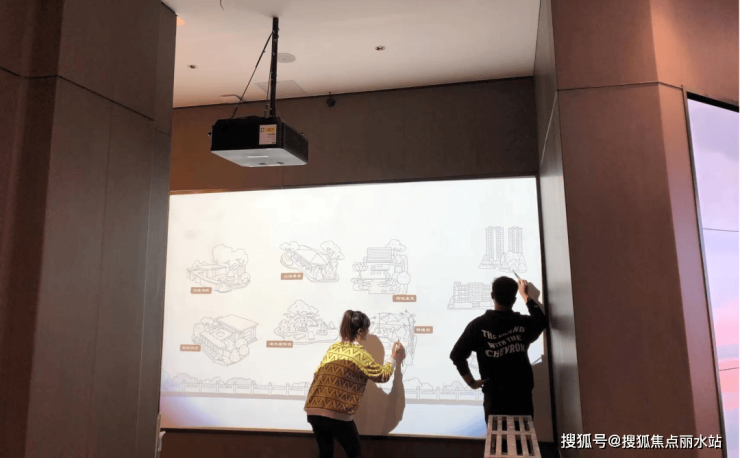 影领科技通过手绘墙的方式,搭配投影机制作国茂府区域分化油墨导电程序,为国茂府定制了一面兼具趣味性与科技感的油墨导电互动墙,化被动为主动,吸引客户主动了解项目价值,提升购房体验感,以提高购房合同签约率。