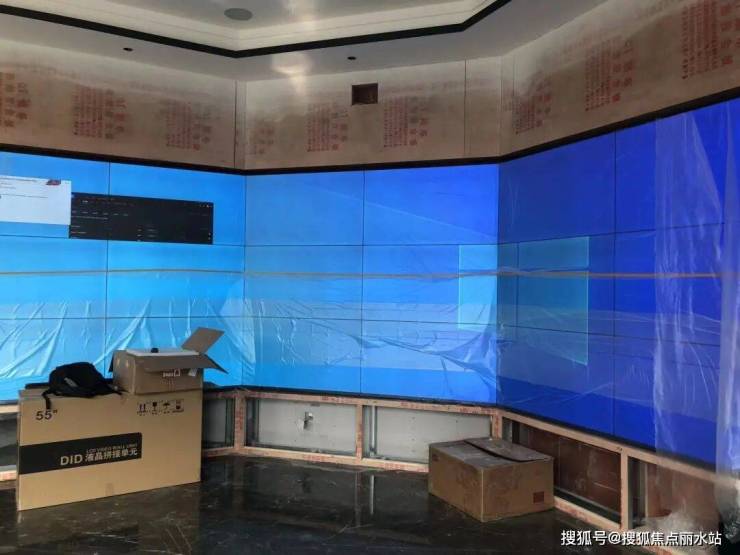 三折幕,由18块屏分三面拼接组成,采用拼接融合技术,创造出身临其境的影像画面。与普通拼接屏系统相比,它具备更大的显示尺寸、更广的视野、更多的显示内容、更高的显示分辨率,以及具有更强烈的视觉冲击力和沉浸感。