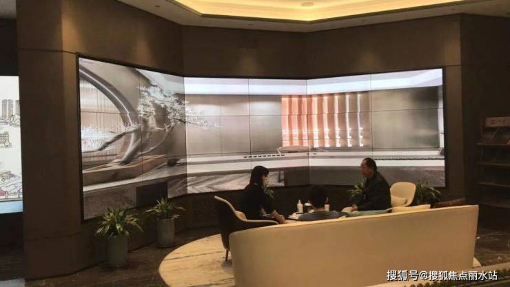 三折幕可用于播放定制的8K超清国茂府宣传片,在5.1环绕全景音响系统的组合下,为现场客户带来绝妙的沉浸式视听体验。