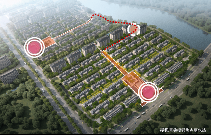 城玫瑰园将Ⅰ、Ⅱ期作为一个整体大地块来规划连接。社区通过一条滨水景观带,串联起三个重要节点,使一、二期间的空间延续保持规整方正,法式经典秩序的延伸。
