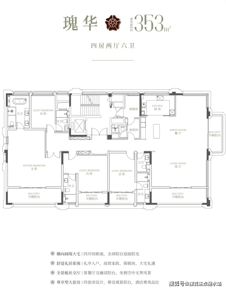 绿城玫瑰园Ⅱ期延续经典法式宫邸风格,限量定制建筑面积约415-700m²合院,迭新打造建筑面积约265-353m²洋房大平层珍藏,以玫瑰的永恒生长同频塔尖栖居向往,致敬承载家族传承、精神归属的生活容器。