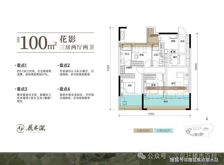 项目用地面积约1.2万方,总建筑面积约5.1万方,住宅建筑面积约3.5万方,容积率约2.99,户数308户,地下停车位318个,住宅车位配比1∶1.03。项目主推建面约100-145平准四代房源。1号楼共33层,1个单元,2梯4户;2号楼共2个单元,1单元16层,2单元18层,均为2梯3户;3号楼29层,1个单元,2梯3户。
