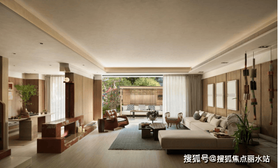 自然韵律的材质色彩:选用原木、天然奢石、洞石等自然材质,搭配米白、焰红等色彩,勾勒出四季更迭的自然韵律,为空间赋予诗意与活力。
