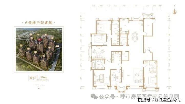 366㎡(六室三厅四卫)多楼层可选,6号楼王西户