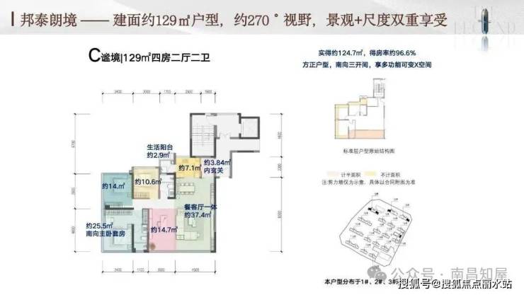 项目涵盖 100 - 139㎡多个面积段,适配刚需与刚改人群。高层得房率达 90%-97%,小高层更是高达 101%-105%。小高层 128㎡和 139㎡为专梯专户,128㎡带有约 10 平独立电梯厅;139㎡作为王牌户型,采用南北双阳台布局,主卧带全景窗,空间视野极佳。部分户型还通过山窗墙设计、180 度全景窗等解决采光问题,同时灵活利用设备平台,提升空间利用率。