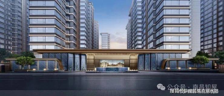 小区主大门宽约 70.6 米、高约 7.9 米,采用大面积奢石和铝板打造,尽显高端。外立面为全公建化封窗设计,运用石材、铝板及水包水等高品质材料,成本更高且质感十足,搭配 LOW - E 玻璃,既美观又实用。