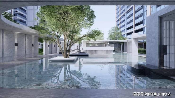 在临街主动退让,精心设计的水系涌泉和进口树种园林,将社区入口隐藏在了一片葱郁清幽之中,完成“入世”“出世”的过渡。