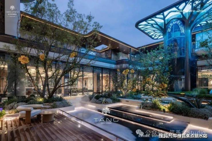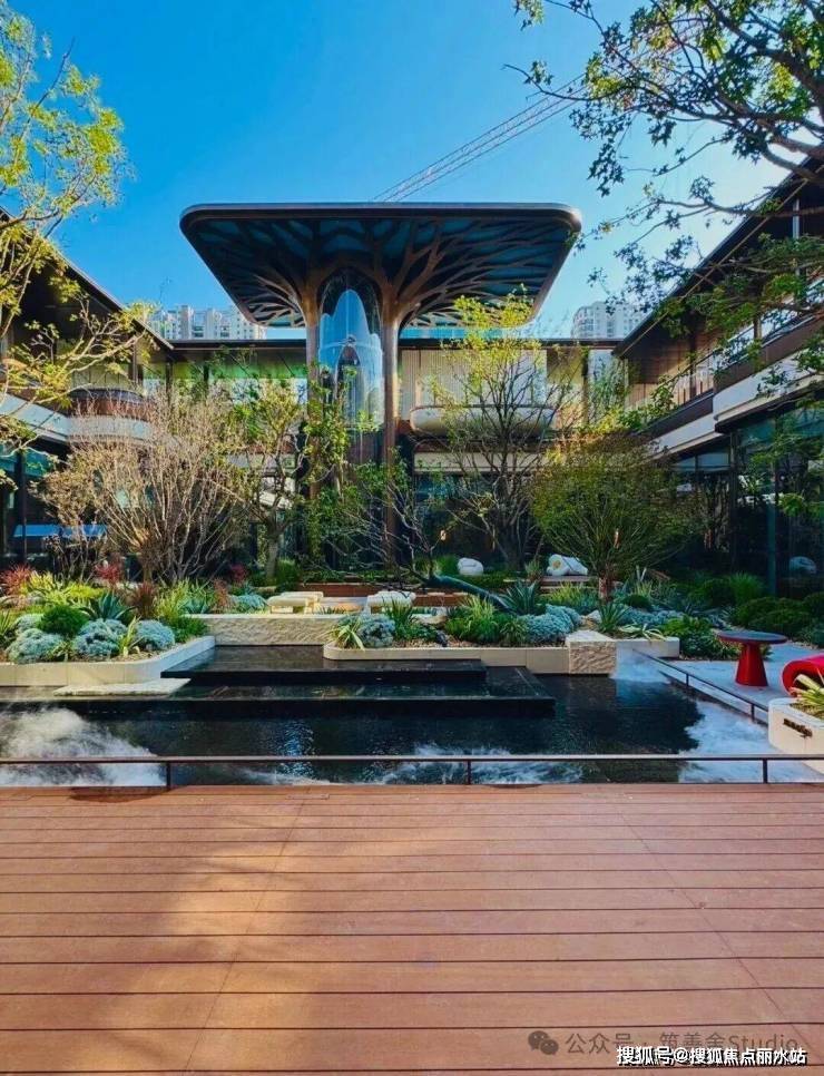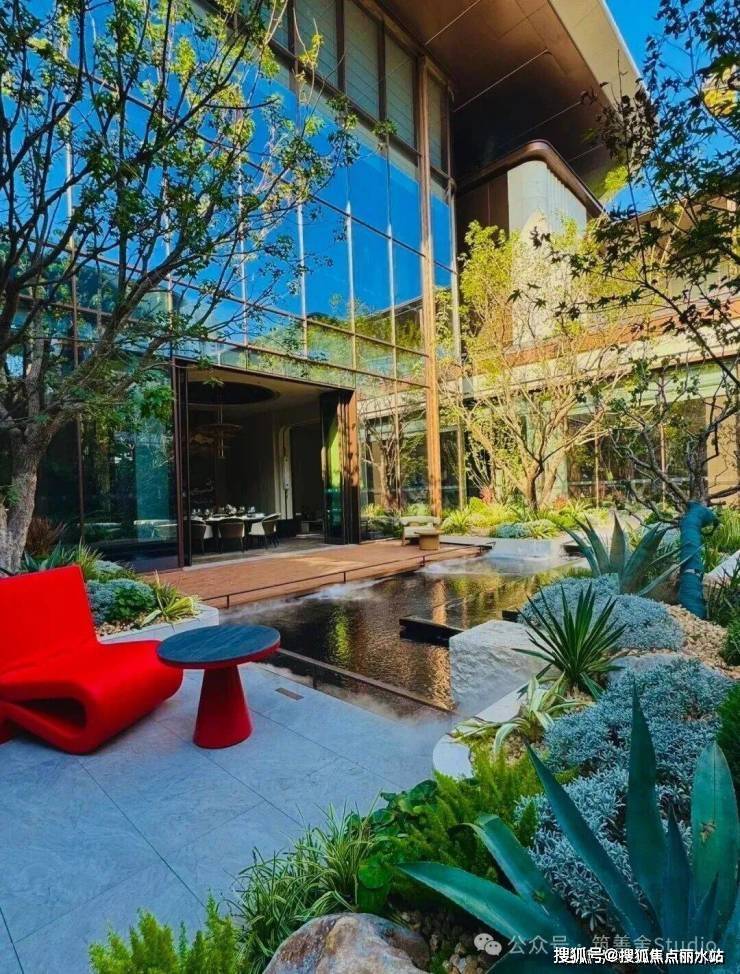 下沉庭院,宛若晓棠室外疗愈秘境。项目汲取苏州留园千年理水精髓,让流水与山石相映成趣,更以海棠生命之树为设计脉络,将自然生机融入每一处细节。这份对古韵的传承与对生活的深刻洞察,成就了兼具自然雅韵与生活温度的庭院,三重美好意境由此呈现。元宝枫、珍贵仿石等造景艺术交织,潺潺流水环绕其间,自然之韵扑面而来。这里,隔绝尘世喧嚣,让身心在绿意与水声中得以舒缓疗愈。