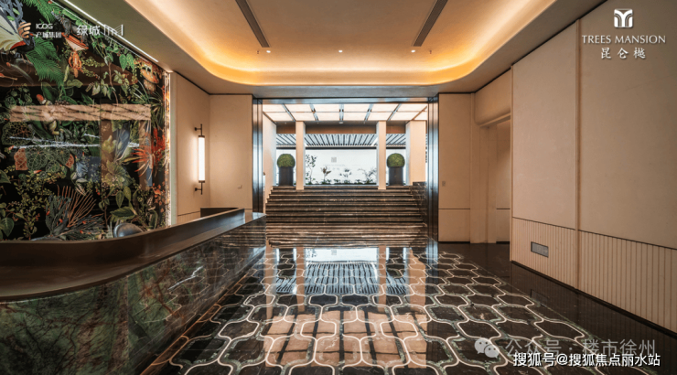 门仪高度接近两层楼,纵向空间拔地而起,营造出类比五星级酒和宫殿建筑的尊崇感。
