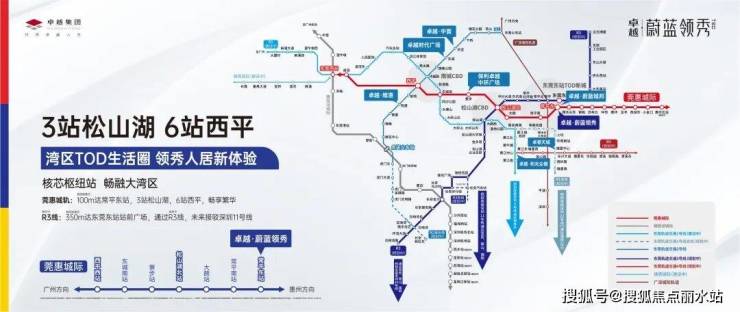 在东莞,轨道专家——卓越集团,先后开发了8个轨道口物业。其中,卓越蔚蓝领秀便位于轨道最密集的镇街——常平,处于东莞东站TOD板块。在项目家门口便可步行至京九铁路、东莞R3线(规划中)、莞惠城轨,3条轨道枢纽便捷通达大湾区。