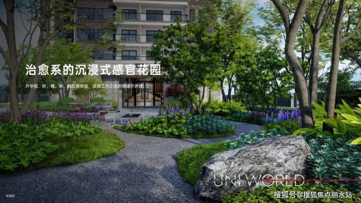 如列阵般的林荫树木与美妙水景,一步一景,恭候你的每一次归家。看得见的美景、闻得到的花香、听得见的涓涓流水声、摸得着的幸福、尝得到的生活甜蜜。