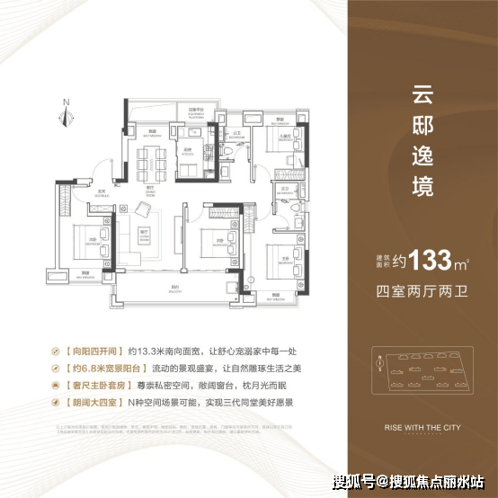 据了解,133m²首开仅约22套,位于8#楼东边户。据样板间提示,东西边户主卧飘窗为转角飘窗。