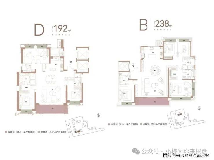 B区主力户型:建面约192㎡、238㎡、240㎡四房传世央