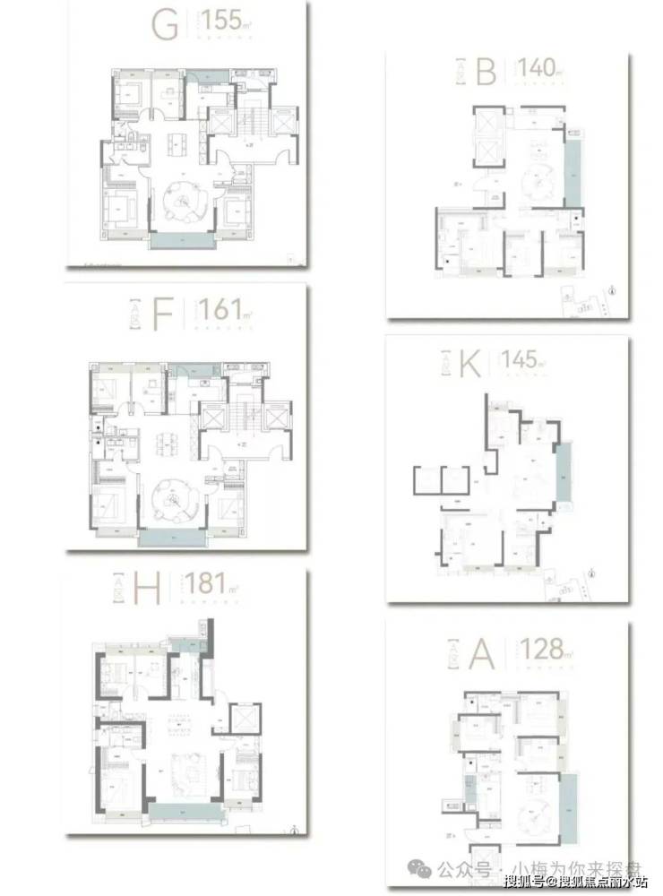 A区主力户型:建面约128㎡、140㎡、144㎡、145㎡、148㎡,155㎡,161㎡,188㎡等