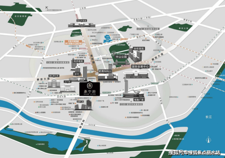 承宁府与香港中心、新世界酒店、甲级写字楼、高端豪宅及 K11 艺术购物中心为邻;举步可达武商 MALL 国广、恒隆广场两大顶奢地标;同济、协和双医疗巨擎左右相守。