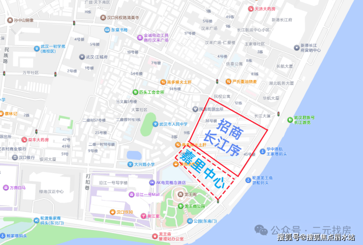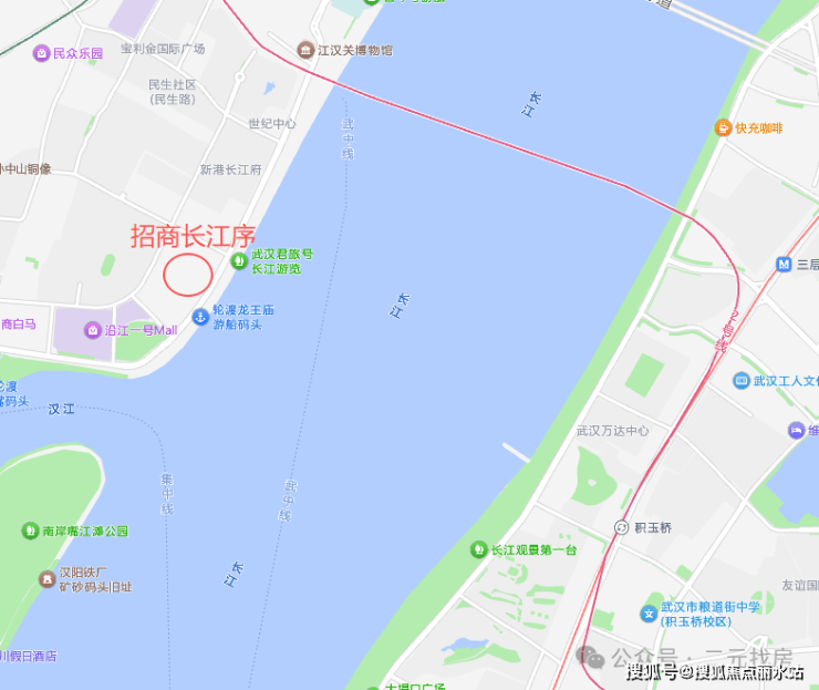 招商长江序位于江汉区龙王庙公园东侧,和嘉里中心挨在一起,属于汉口内环的好地段。