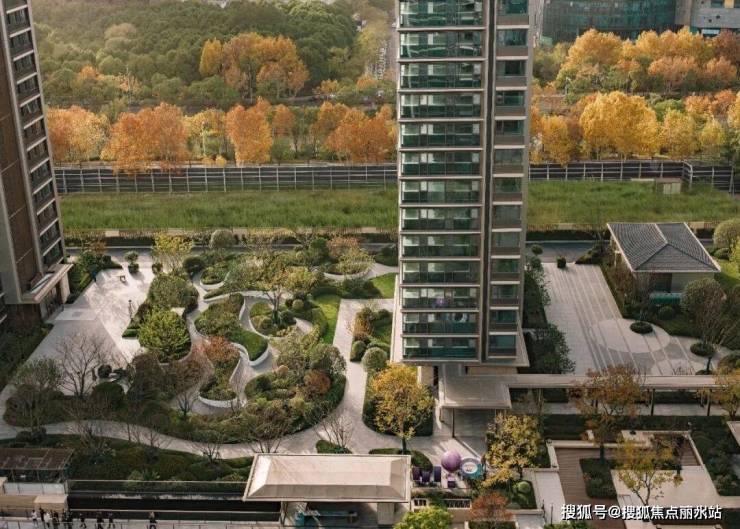 约10000㎡的下沉式中央景观"翡翠之钻"是整个园林的核芯,流水潺潺间,潋滟花草与名贵树木层次交错,步步皆景的静谧与舒适,仿佛闯进了隐奢的四季酒店。