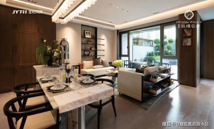 在高技派的匠心雕琢下,屋顶是很有仪式感的中式重檐、墙面是奢石+铝板的勾勒、窗框是纤细的金属线条、收口是非常复杂的斜切工艺,南北立面都是大面的玻璃,比以往的传统墅品都来的通透、轻盈又不失贵重,为迪荡带来“前所未见”的精致建筑美学,让传统与当代在此完成完美对话。