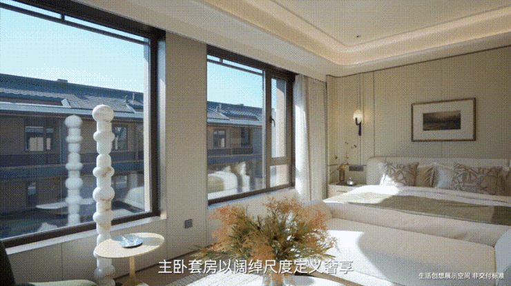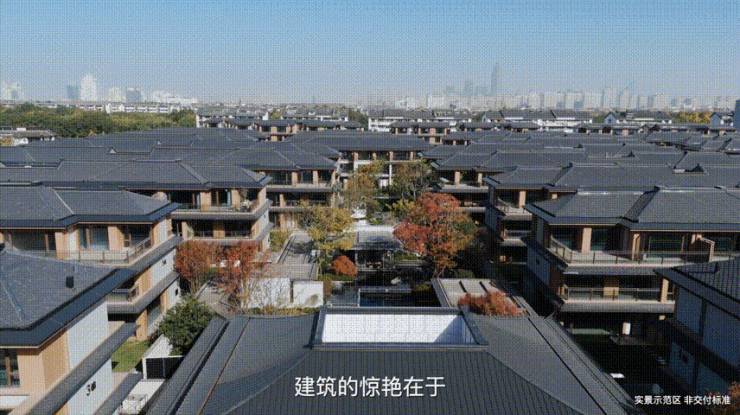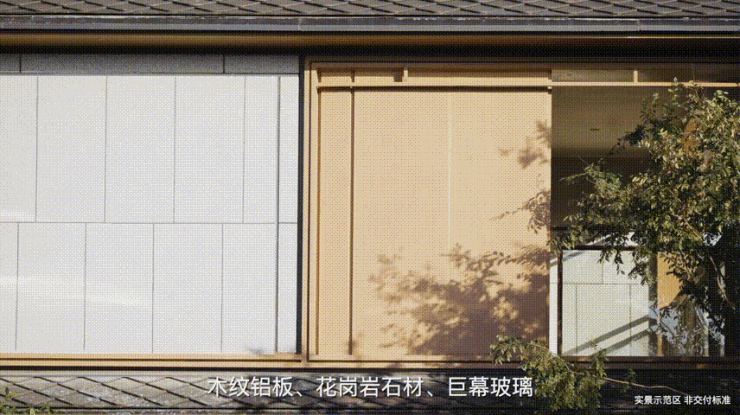 整体建筑,以宋韵美学为底蕴,使用木色铝板搭配部分花岗岩石材,创新东方韵味的美学立面,营造宁静、舒缓的居住质感。