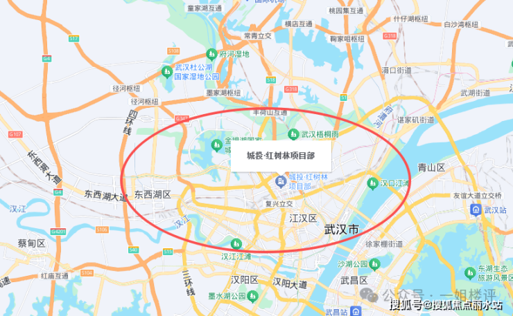 往西则是武汉园博园,顺便辐射到东西湖核心区;往东一条快速路之隔便是江岸后湖核心。