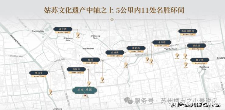 邻市政府、近留园,地处世界文化遗产中轴,且双活水水系玉带环腰,建发·璟园以市府芯、商业芯、文化芯三芯交汇地段,脉承千年灵韵,打造姑苏唯一双会所滨水宋韵墅区!