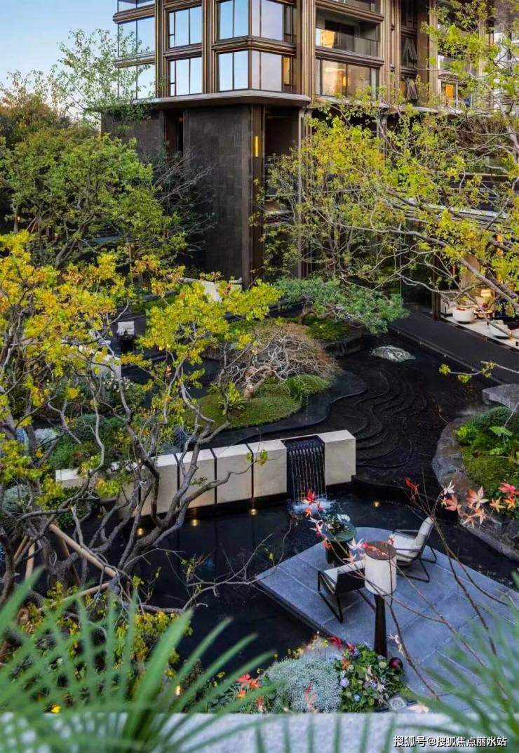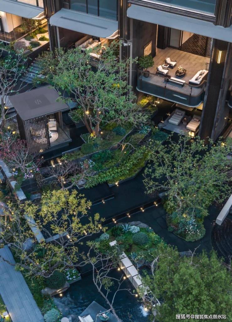 向上,则是整座溪谷的观景逸闲之处——【悬浮茶室】,它凌于山川溪谷之上,收纳庭院的万千水意,搭配巴西高山流水石桌面,于此静憩,自得静心。