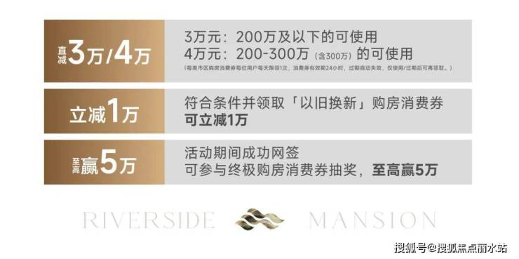 现在入席江上春风,不仅能买在利好兑现前,且能享受多重优惠。2月12日-3月31日期间,正值2025春季丽水线上房博会,领取购房消费券,认购江上春风,直减3万/4万;符合条件并领取「以旧换新」购房消费券,可立减1万;活动期间成功网签,可参与终极购房消费券抽奖,至高赢5万;三大消费券叠加,至高10万优惠。(信息来源:网络,上述政策内容具体以2025春季丽水线上房博会平台信息为准)