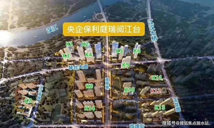 保利庭瑞阅江台总建面约137.8万方,分14个地块,总户数6759户,琴台大道以北还有部分地块未开发,以南的K7-K14已交付,目前主推琴台大道以南的K14、K8两个地块,K9、k7地块也有少量房源。