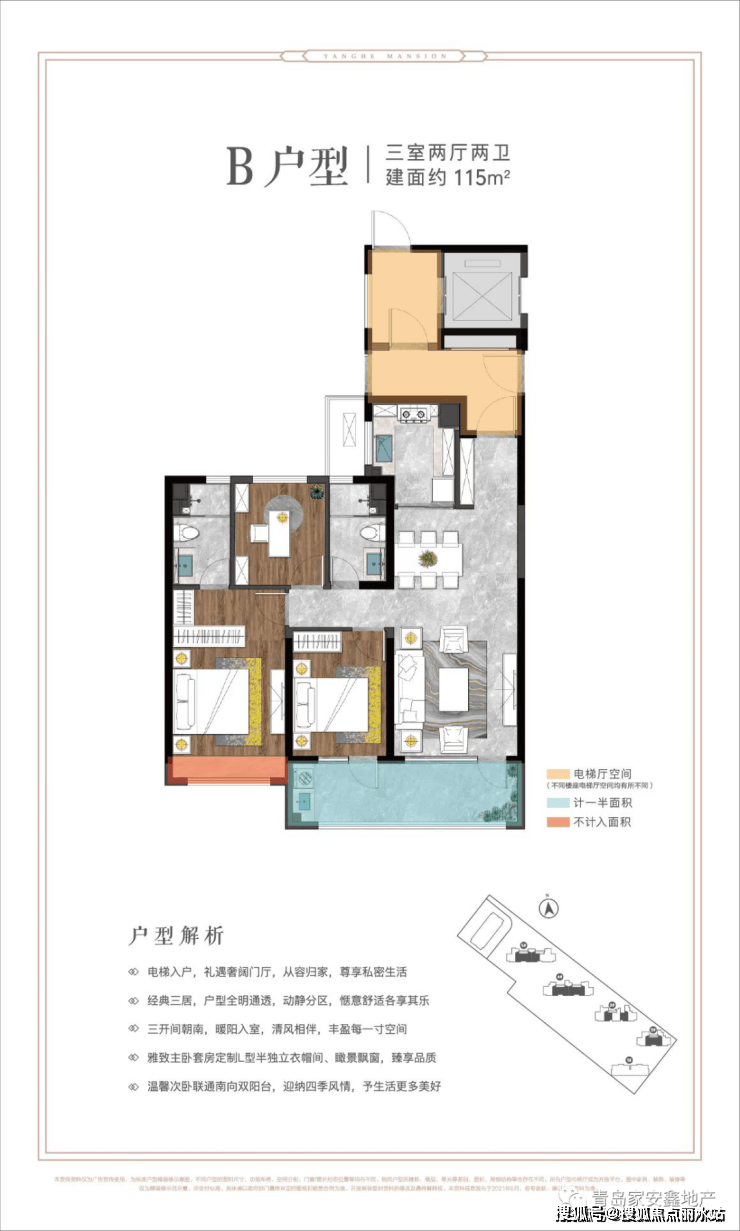 项目总占地:32851.26平米建筑面积:10万平米产品:4栋高层,1栋洋房(1#10层;2#3#4#33层;5#29层)首开面积:115/125套三,130套四(首开1#,2#)单价:2#中间户115平均价31700,边户125平均价32400;1#130平洋房35500总价:高层360万~410万;洋房460万总户数:708户产权年限:70年梯户比:1梯2户公摊:高层公摊21-23%,洋房16%物业:华新园物业物业费:3元交房时间:2024年12月交付标准:精装修车位配比:1:1.4,人车分流,共1100个地下车位(地下车位共3层)容积率:3.1绿化率:35%层高:3米认筹:20万
