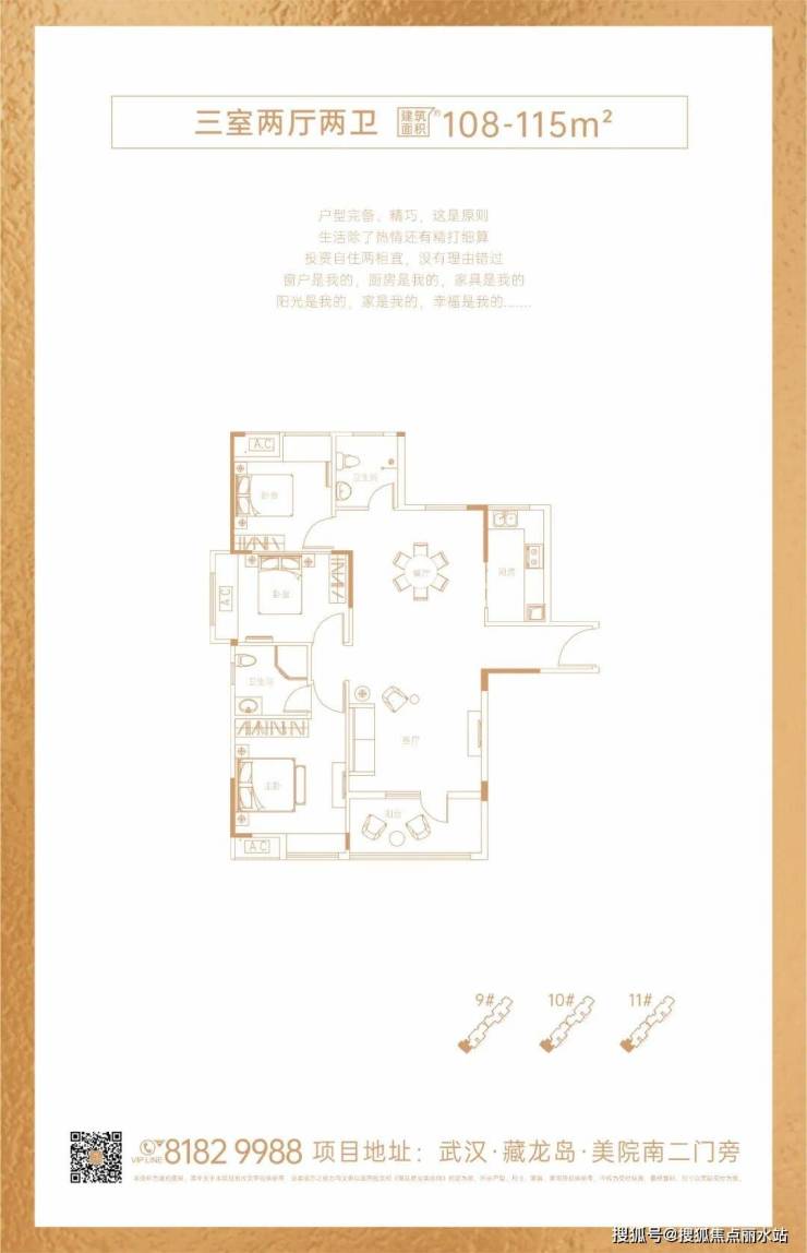 如果想自住的更舒适一些,项目还有少量建面约108-115㎡的三室两厅两卫可供选择。