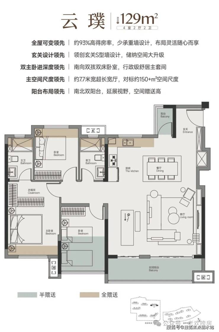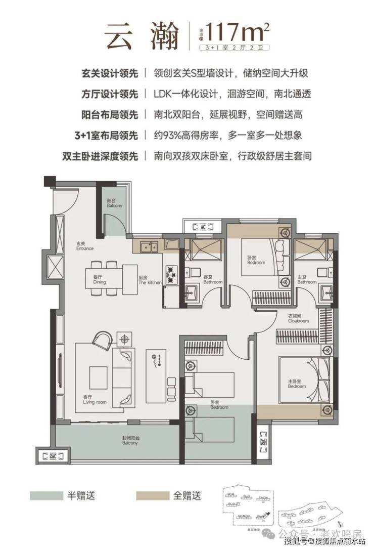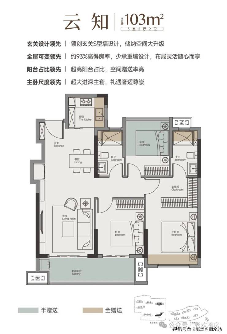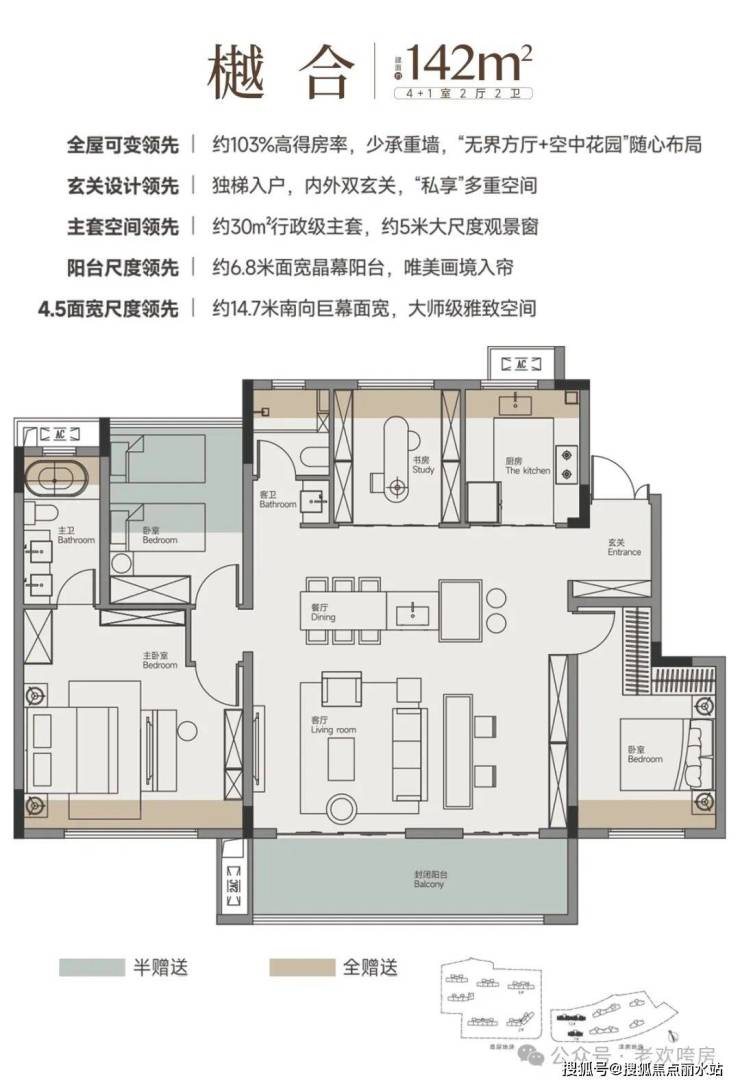 户型设计上,进行了独创S型玄关、少承重墙设计,空间灵活布局,约20%高阳台占比。