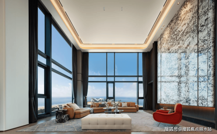 社区内的悬浮大堂,搭建阳光露台、流光书院、艺术沙龙等空间,更是将 “格调感” 拉满:悬浮大堂打破传统大堂的沉闷,以轻盈设计营造仪式感;阳光露台让业主随时可驻足,感受海风与阳光;流光书院、艺术沙龙则为高端圈层社交提供了雅致场所,满足业主精神文化需求。