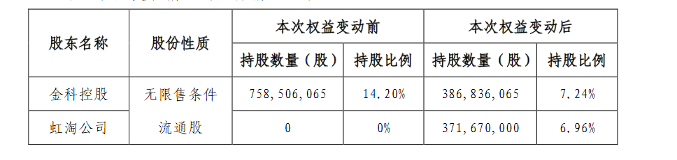金科控股及虹淘公司持股情况列表