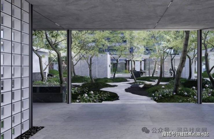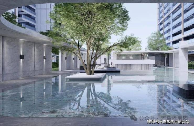 松弛感:中心“水瀑光院”水波荡漾,心绪自轻松