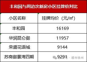 比如新盛·丰和园挂牌均价16169元/㎡(根据贝壳网9月28日数据),也是片区的房价天花板,片区次新房小区挂牌均价为9144-11957元/㎡,丰和园价格比周边二手房高出了5000多元/㎡!