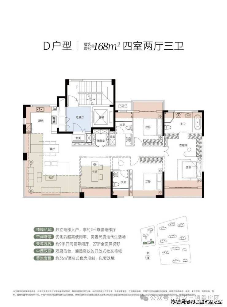 独层独户(一个单元就一户)、 11层洋房、3.15层高、得房率约105%、 270度无边界视野、约45平大主卧、小区带会所带风雨连廊、房子面宽19米。
