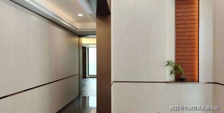项目采用的是地上+地下双精装入户大堂,入户大堂的电动门均具备人脸识别功能,可实现无碰触归家,地上+地下双电动入户门的设计在片区内仅此一家。这个门宽约4米、高约3.6米,同社区大门一样气度感和尺度干十足。运用了石材、铝板吊顶、金属门套、不锈钢、超白玻、百叶、仿云⽯灯等多重设计,集品质感与归家温馨感与一体。