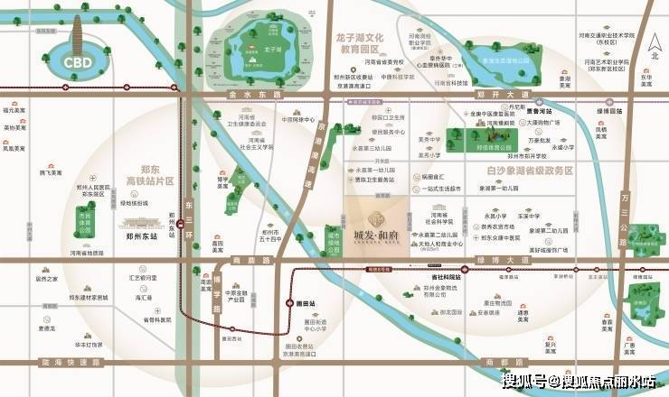 尊踞郑东高铁商务区、白沙象湖省级政务区、龙子湖高校园区三大价值板块交汇核芯,近享省级高阶资源,乘郑东大势,前瞻未来宏图