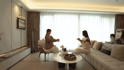 况且,根据《中国家庭发展报告》:现代年轻家庭接待亲戚次数不足6次,客厅从“公共待客”转变为“私有空间”。相比客厅,如今的家庭公共空间更适合称之为我厅。基于此,雨花新澍的留白我厅十分动人:在建面约69㎡的约4.8米我厅,放得下沙发+投影的闲适,也放得下独立办公的需求;在建面约105㎡的我厅,约4.7米的宽度能让女主人做瑜伽时尽情舒展身体,也能让小朋友的绘本角、玩具架有处可放;在建面约115㎡的约6米我厅中,更是可以融合家庭影院、健身空间、学习场地、儿童游乐场等多种场景,自由定制。