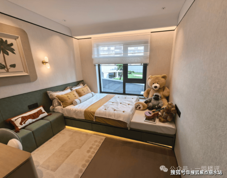 超大拐角飘窗的主卧,一大早光线估计非常刺眼,爱睡懒觉的人可能不太喜欢这样的主卧。
