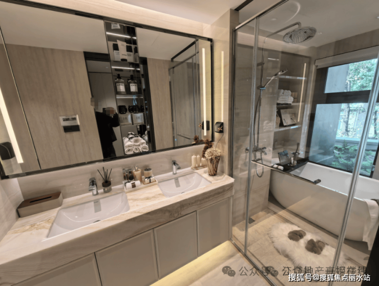 主卧的卫生间也是双台盆,不过没有放置浴缸:
