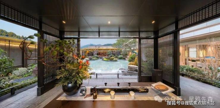 【大坡屋顶】延续唐代出檐深远风格,配合中式黑瓦,展现时代美学气息。
