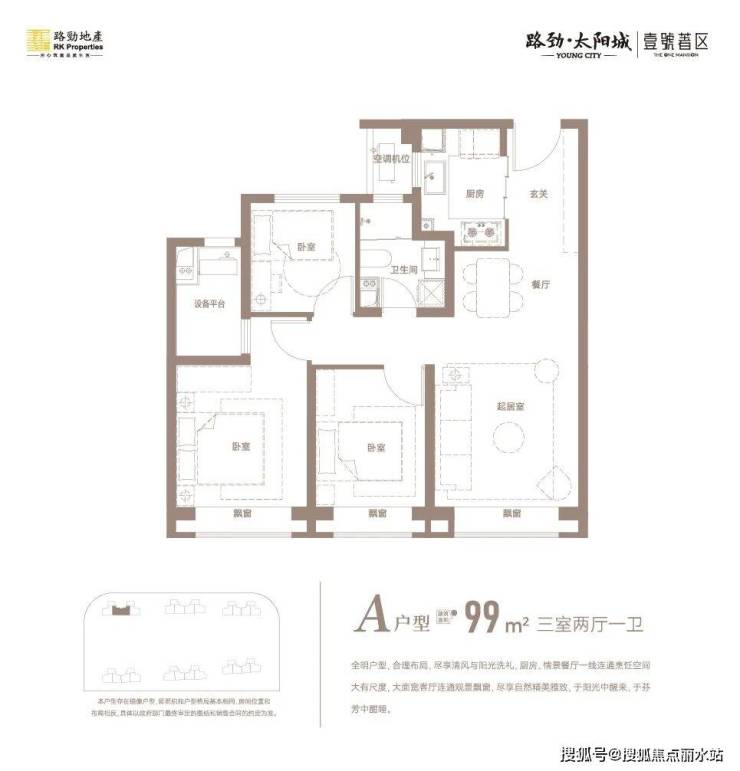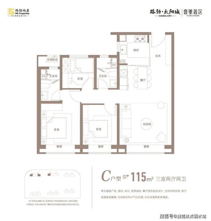 所有户型,南向空间均配置了飘窗,高度仅约35公分,尽可能放大空间感。