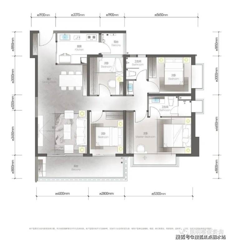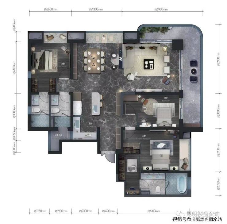 🔥澜悦:建面约190㎡,三房两厅四卫阔景阳台,端头横向阔厅,LDK公区,全屋空调,杜拉维特、汉斯格雅等超一线卫浴品牌