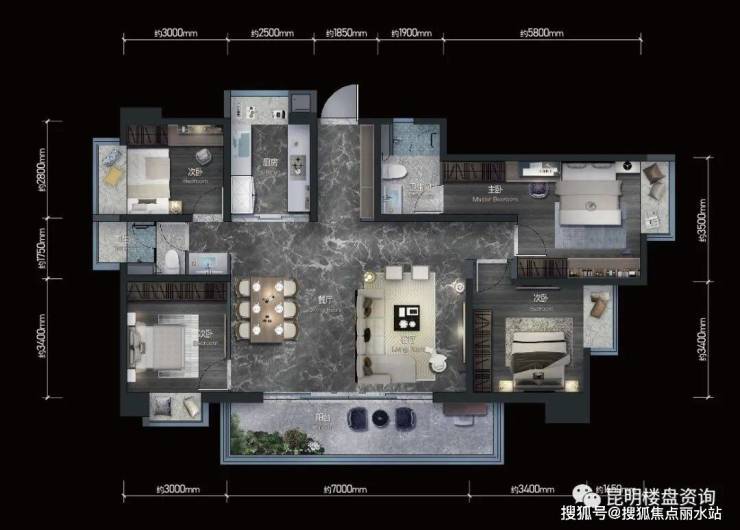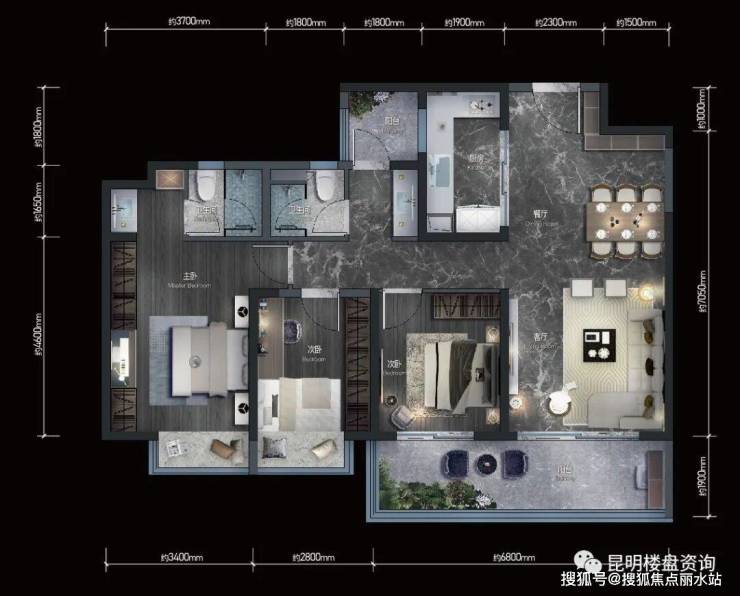 🔥山峯:建面约107㎡,三室两厅两卫客餐厅一体化,双卫生间设计,动静分区,U型厨房,主卧套房设计