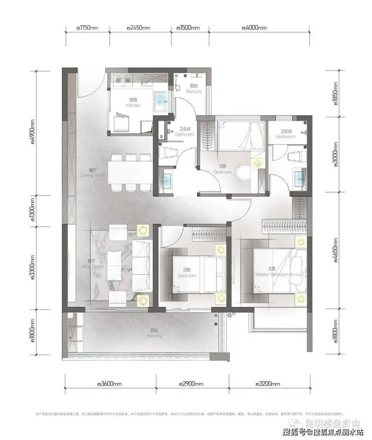 🔥河印:建面约130㎡,四室两厅两卫三开间开阔采光,约6.8米大阳台,广角视野无界观景,空间动静分区互不干扰