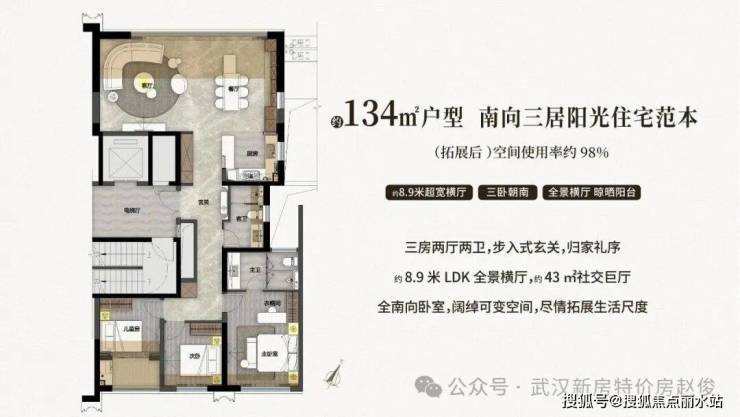 建面约 134-191 m²全大户型配置,2T2户纯板式结构,择邻而居,业主圈层品质与汉口、武昌滨江顶级豪宅形成价值对位
